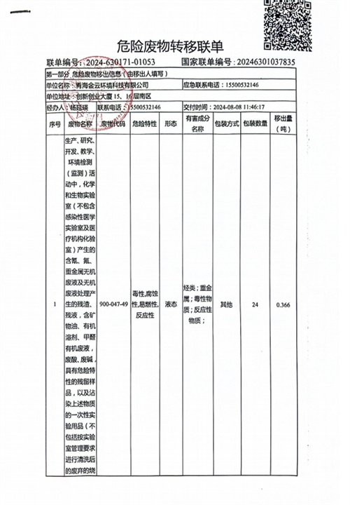 危險(xiǎn)廢物轉(zhuǎn)移聯(lián)單發(fā)布日期:(2024/9/27) 點(diǎn)擊次數(shù):1576 |
