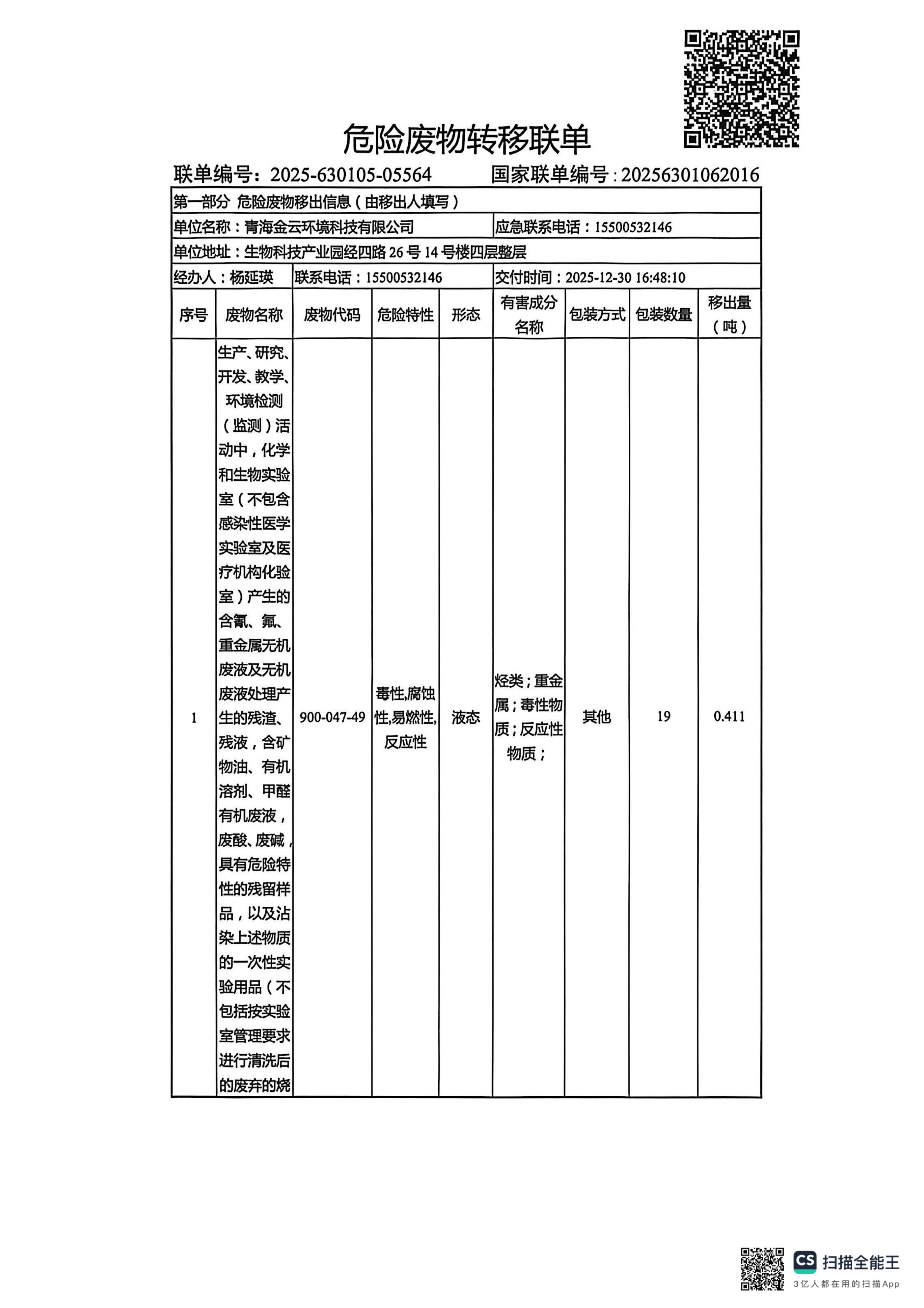 2025年危廢轉(zhuǎn)移聯(lián)單