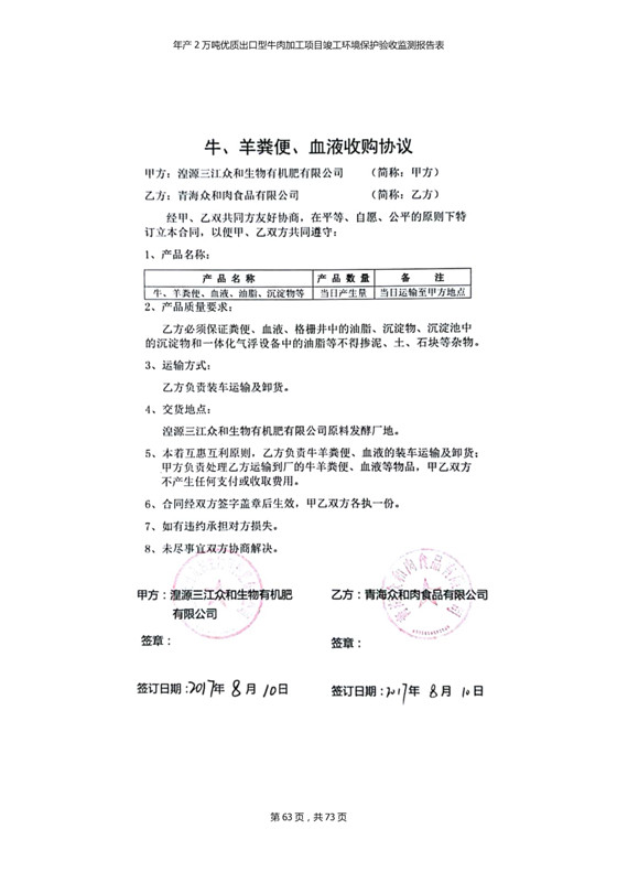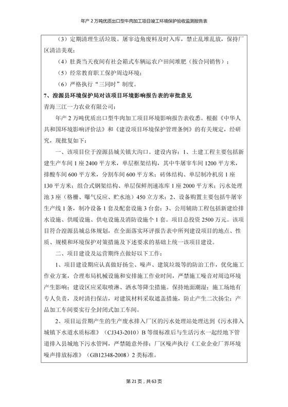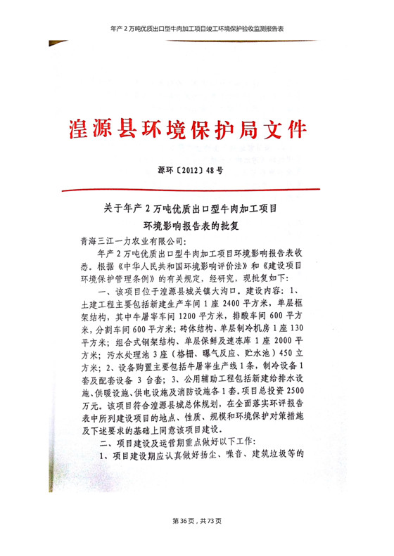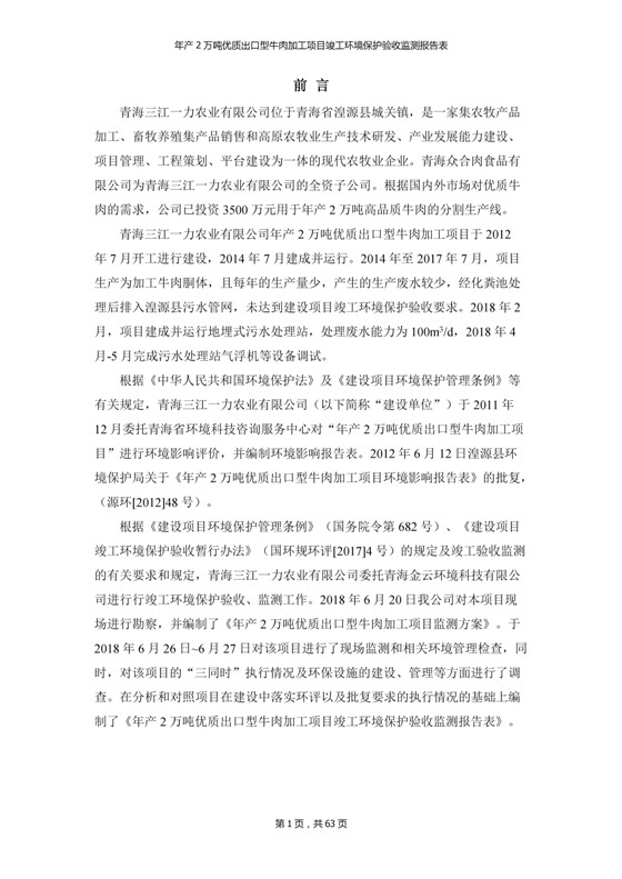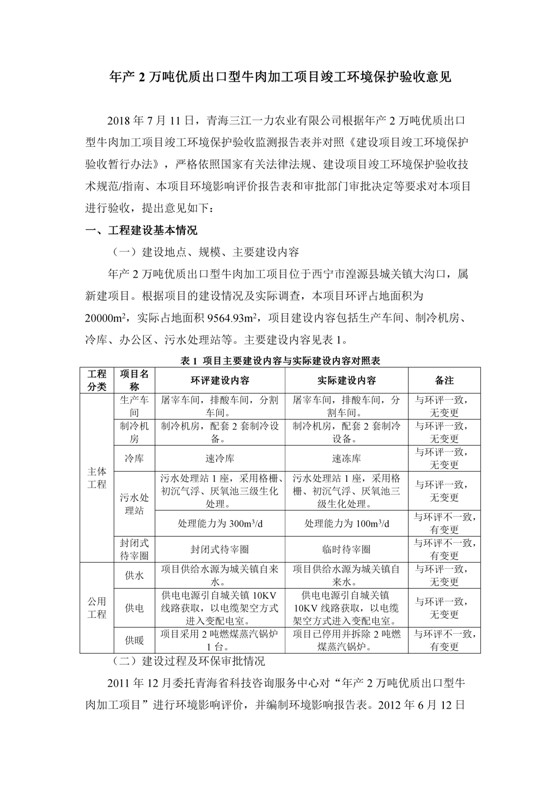2018年7月11日,青海三江一力農(nóng)業(yè)有限公司組織召開年產(chǎn)2萬噸優(yōu)質(zhì)出口型牛肉加工項目竣工環(huán)境保護驗收會。