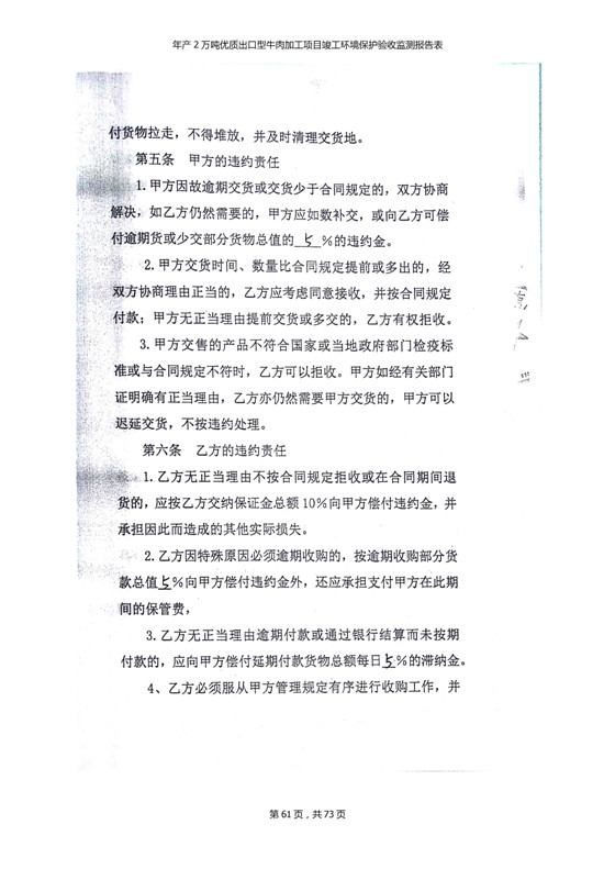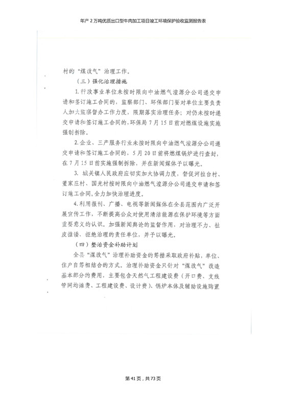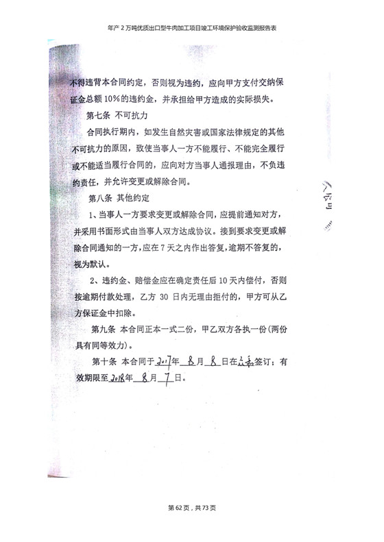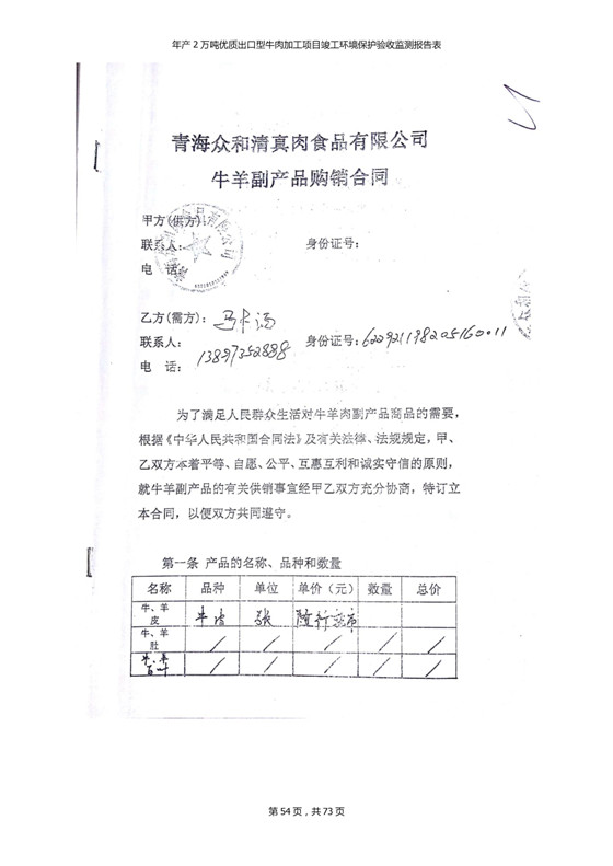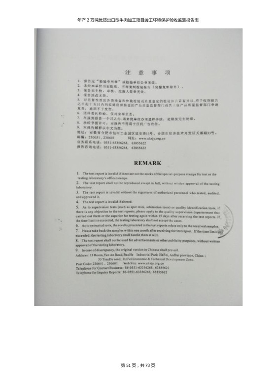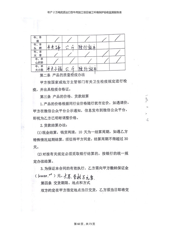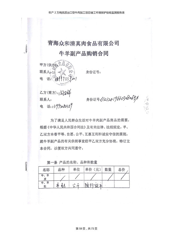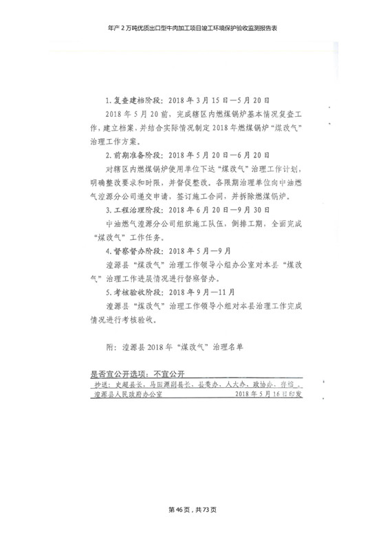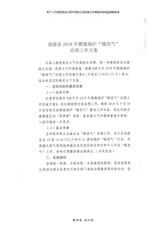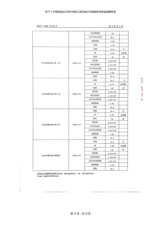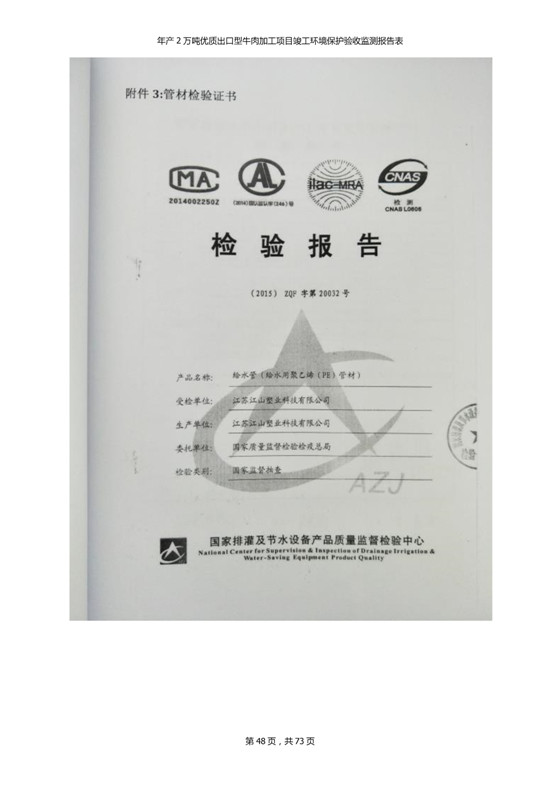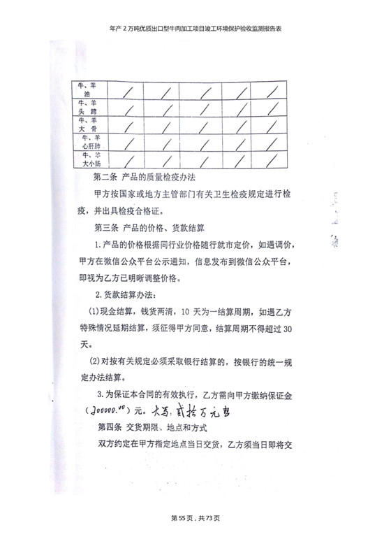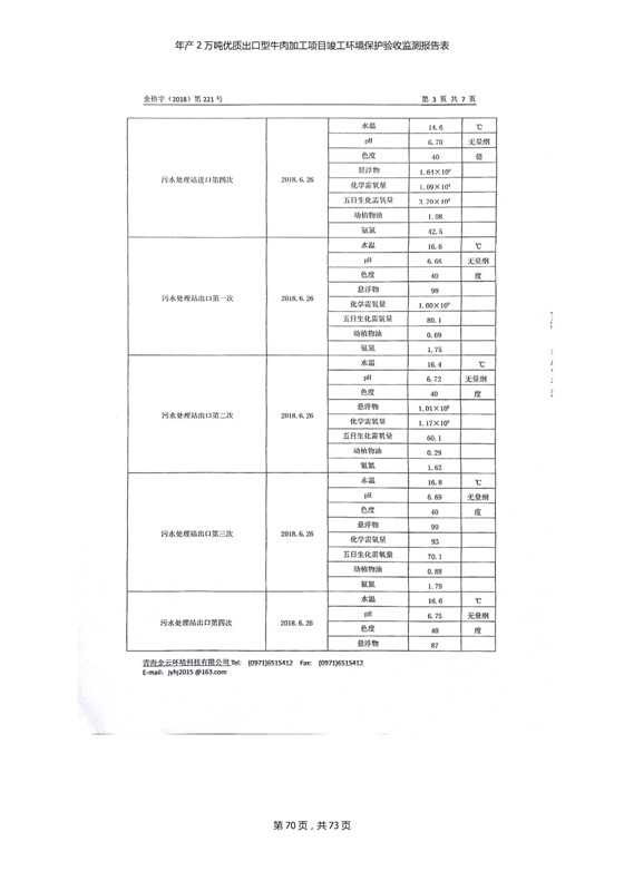 根據(jù)中華人民共和國國務(wù)院令第253號《建設(shè)項目環(huán)境保護管理條例》(中華人民共和國國務(wù)院令第682號《國務(wù)院關(guān)于修改〈建設(shè)項目環(huán)境保護管理條例〉的決定》和《建設(shè)項目竣工環(huán)境保護驗收暫行辦法》,嚴格依照有關(guān)法律法規(guī),建設(shè)項目環(huán)境保護設(shè)施驗收技術(shù)規(guī)范,本項目環(huán)評報告表和環(huán)保審批部門審批意見以及企業(yè)自行驗收相關(guān)要求等對本項目進行驗收,本項目符合環(huán)保驗收條件,可以通過環(huán)保驗收。 青海三江一力農(nóng)業(yè)有限公司組織召開年產(chǎn)2萬噸優(yōu)質(zhì)出口型牛肉加工項目(一期工程)驗收組意見.