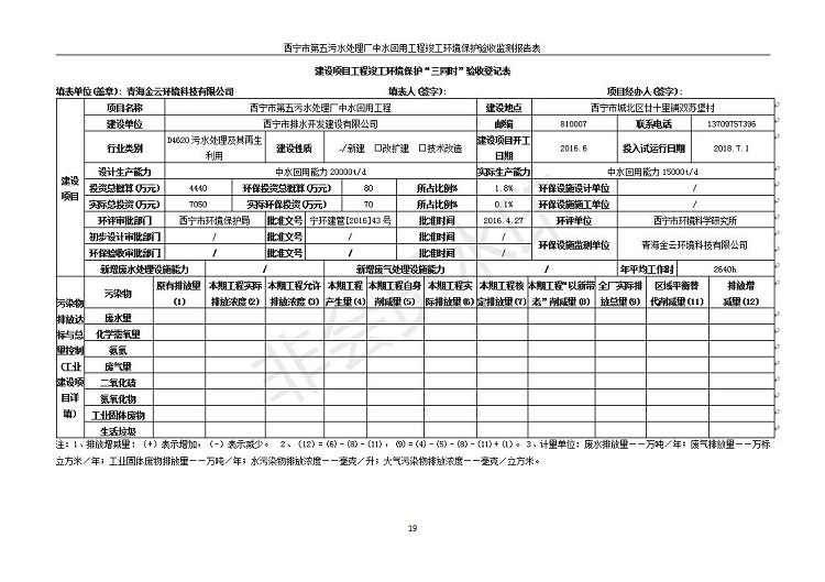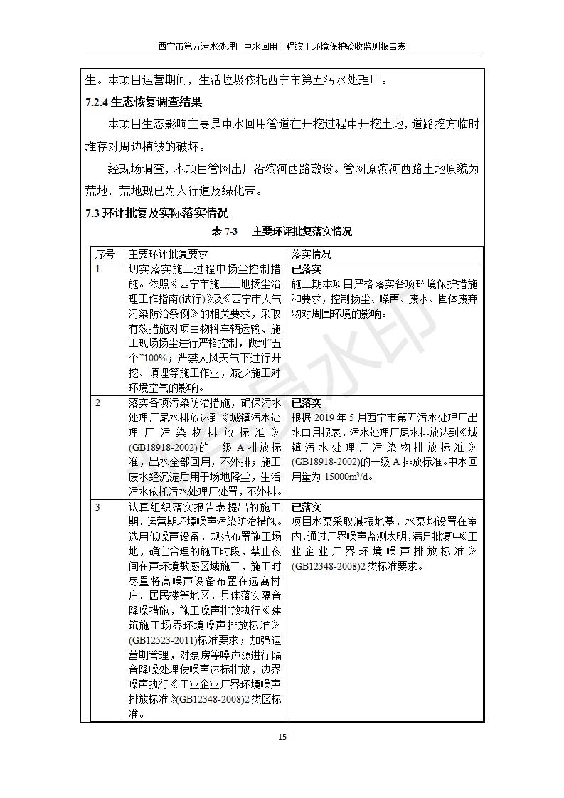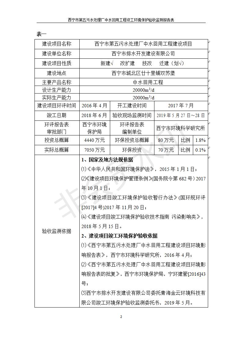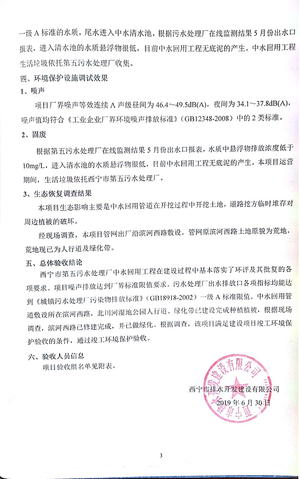 西寧市第五污水處理廠中水回用工程建設(shè)項目竣工環(huán)境保護驗收監(jiān)測報告表公示發(fā)布日期:(2019-7-10) 點擊次數(shù):2248 |