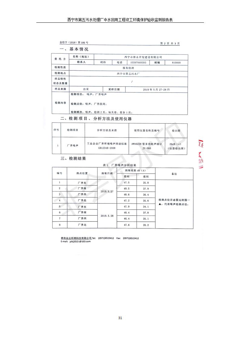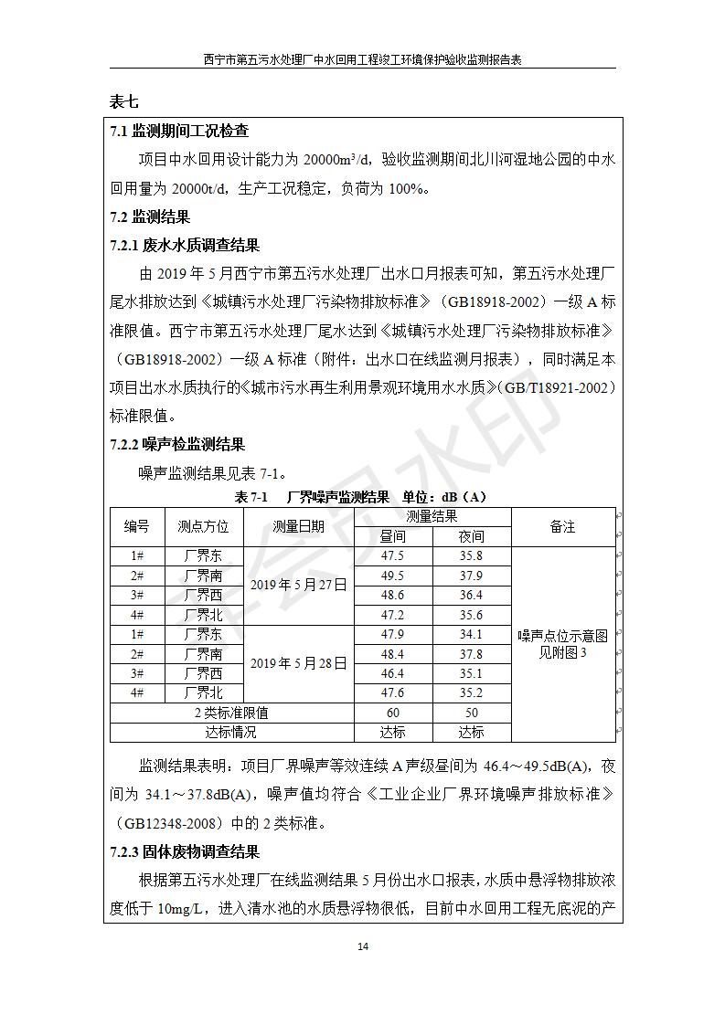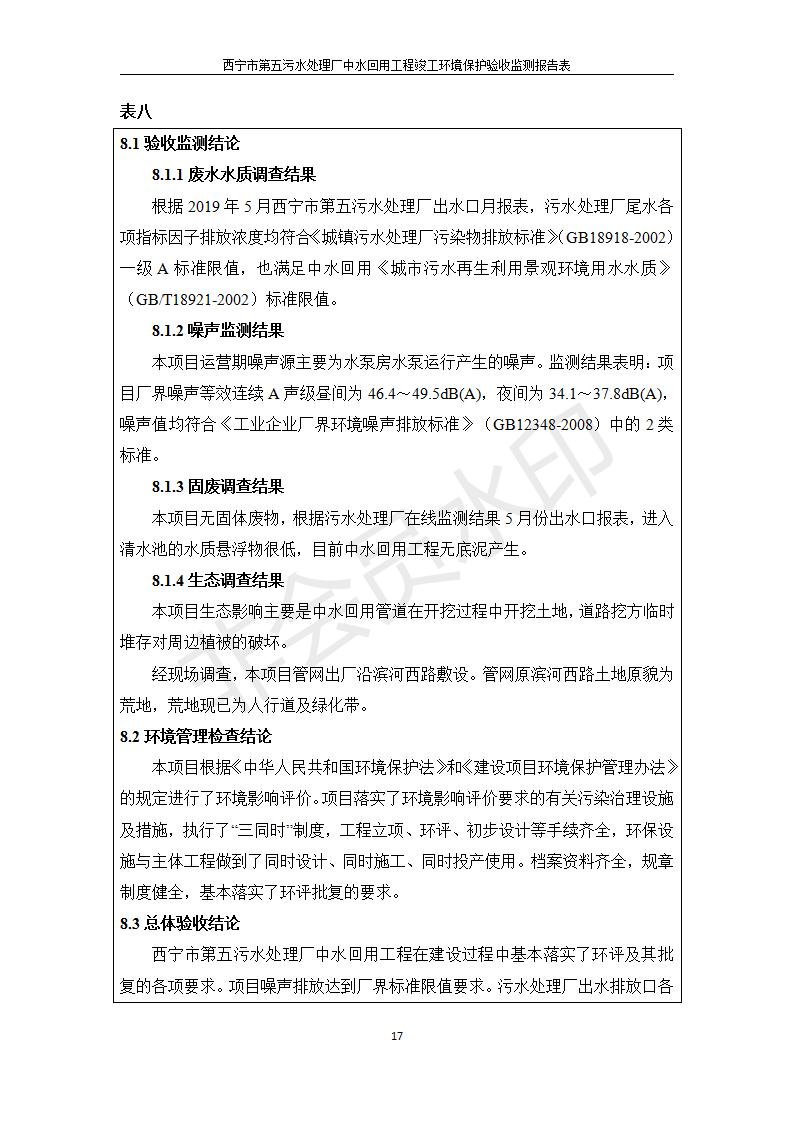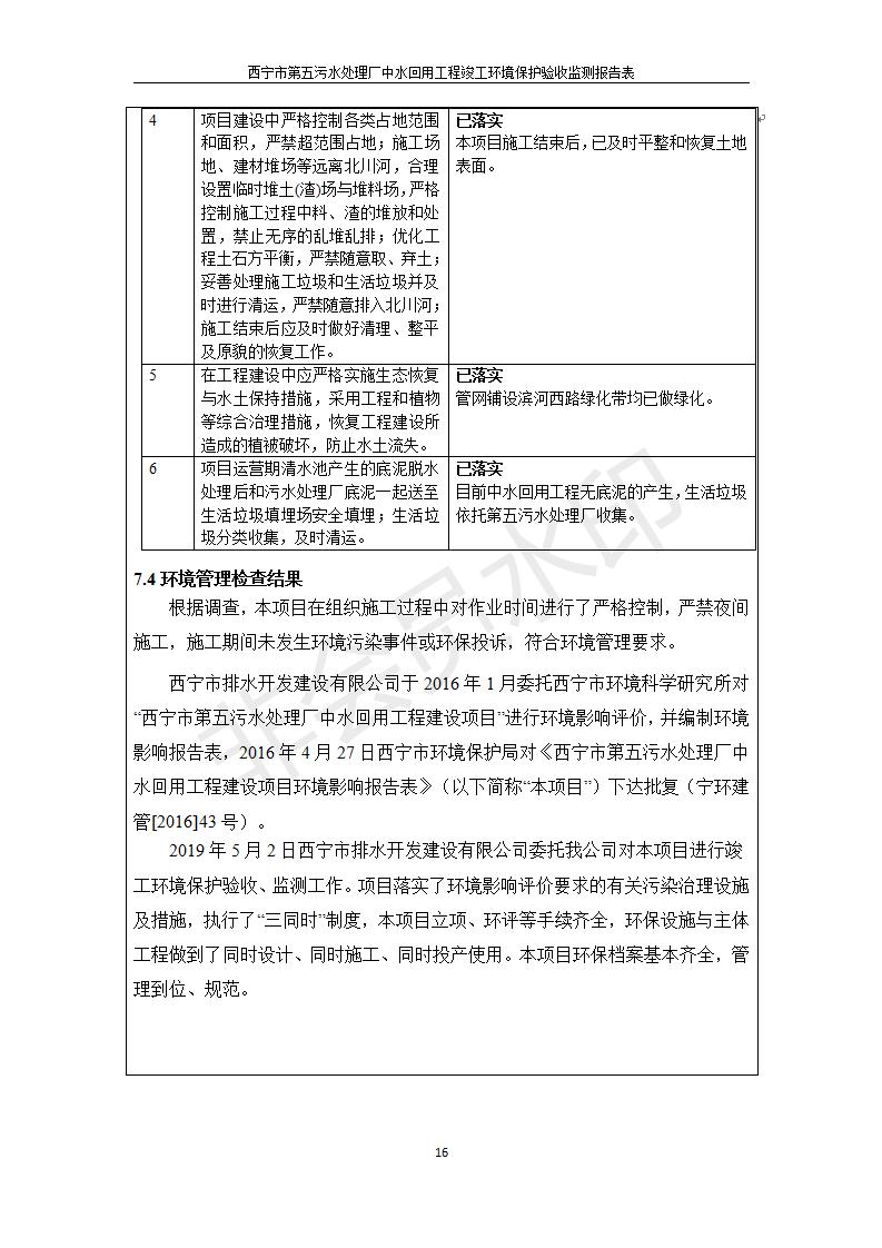 西寧市第五污水處理廠中水回用工程建設(shè)項目竣工環(huán)境保護驗收監(jiān)測報告表公示發(fā)布日期:(2019-7-10) 點擊次數(shù):2248 |