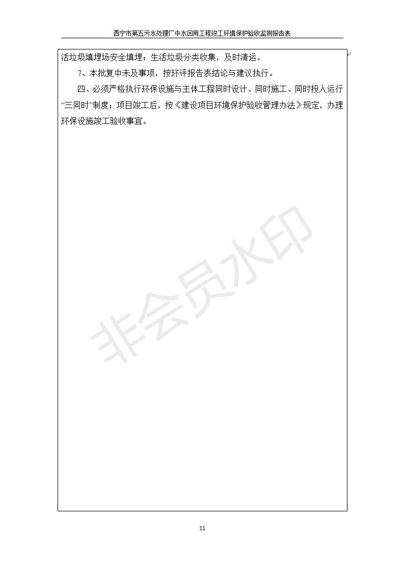 根據(jù)中華人民共和國國務(wù)院令第682號《國務(wù)院關(guān)于修改〈建設(shè)項目環(huán)境保護管理條例〉的決定》和《建設(shè)項目竣工環(huán)境保護驗收暫行辦法》(國務(wù)院令682號),西寧市第五污水處理廠中水回用工程建設(shè)項目(包括竣工環(huán)境保護驗收監(jiān)測報告表和驗收意見)公示如下。 一、項目名稱:西寧市第五污水處理廠中水回用工程建設(shè)項目 二、地點:西寧市城北區(qū)廿十里鋪雙蘇堡 三、建設(shè)單位:西寧市排水開發(fā)建設(shè)有限公司