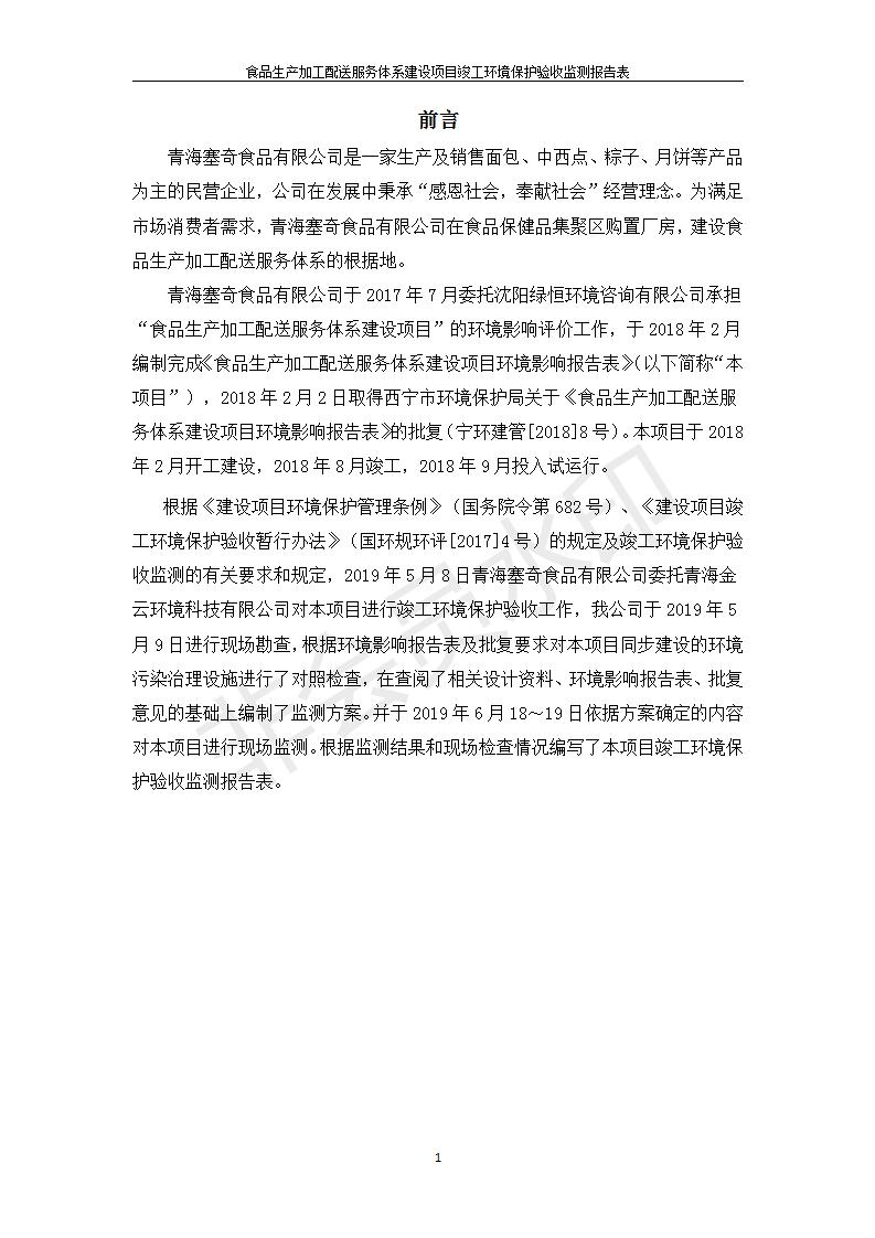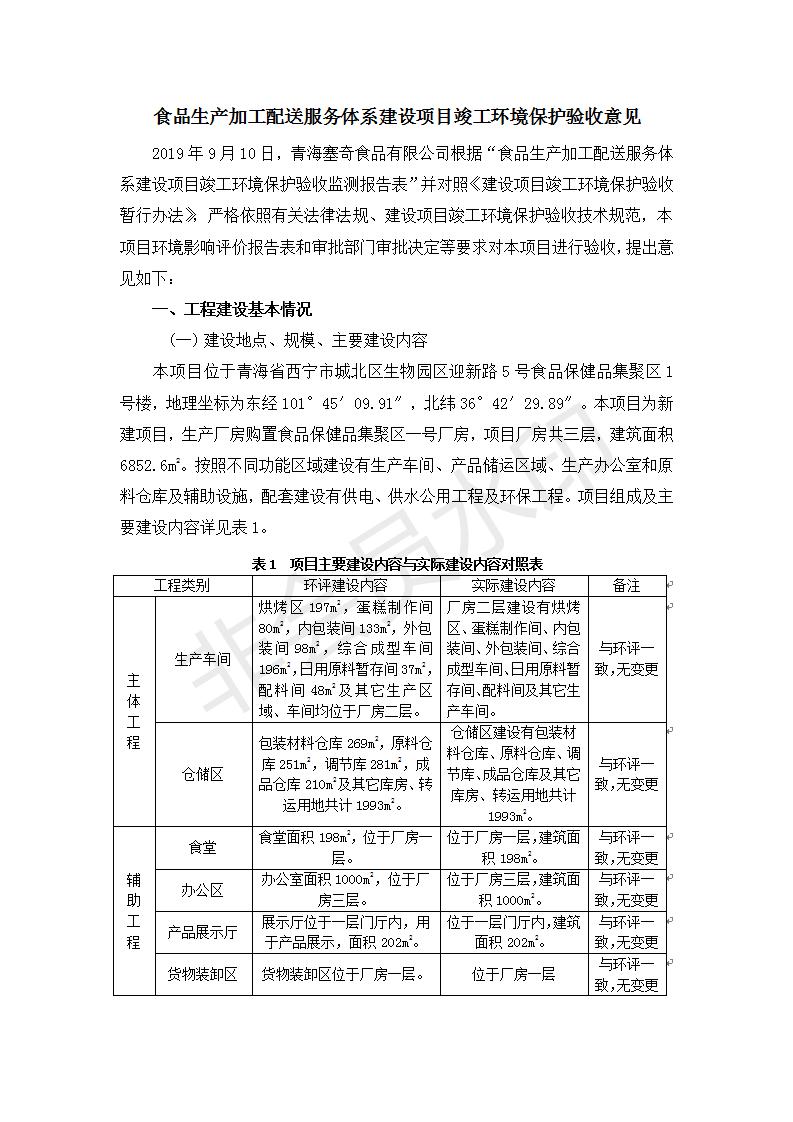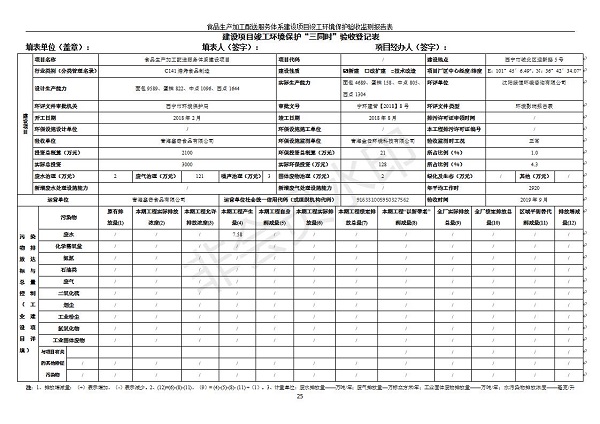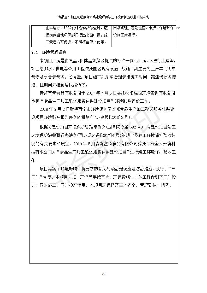 根據(jù)中華人民共和國(guó)國(guó)務(wù)院令第682號(hào)《國(guó)務(wù)院關(guān)于修改〈建設(shè)項(xiàng)目環(huán)境保護(hù)管理?xiàng)l例〉的決定》和《建設(shè)項(xiàng)目竣工環(huán)境保護(hù)驗(yàn)收暫行辦法》(國(guó)務(wù)院令682號(hào)),食品生產(chǎn)加工配送服務(wù)體系建設(shè)項(xiàng)目(包括竣工環(huán)境保護(hù)驗(yàn)收監(jiān)測(cè)報(bào)告表和驗(yàn)收意見(jiàn))公示如下。 一、項(xiàng)目名稱:食品生產(chǎn)加工配送服務(wù)體系建設(shè)項(xiàng)目 二、地點(diǎn):西寧市城北區(qū)生物園區(qū)迎新路5號(hào)食品保健品集聚區(qū)1號(hào)樓 六、聯(lián)系電 話:0971-6515411 七、公示時(shí)間:二〇一九年九月二十日至二〇一九年十月二十二日 公示期間,對(duì)上述公示內(nèi)容如有異議,請(qǐng)以書面形式反饋,個(gè)人須署真實(shí)姓名,單位須加蓋公章。
