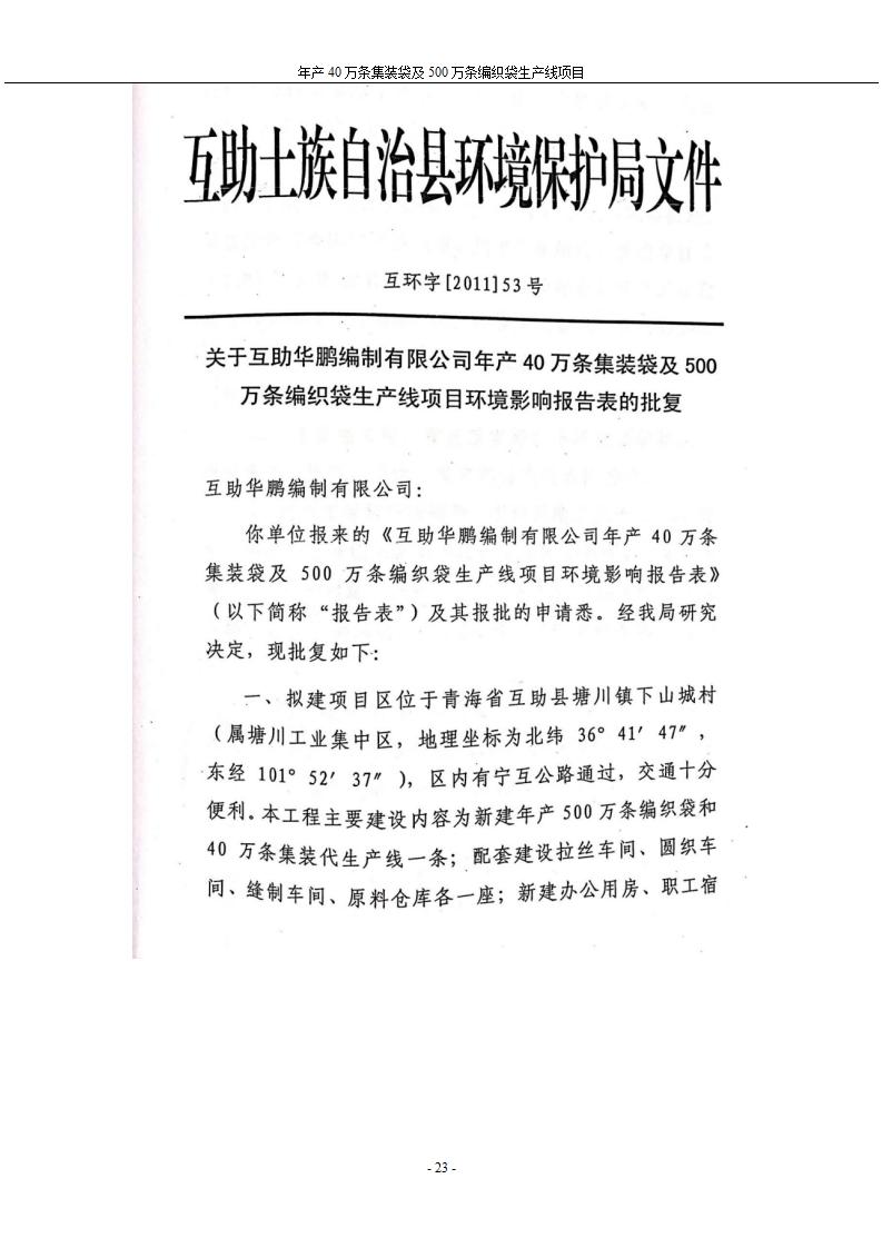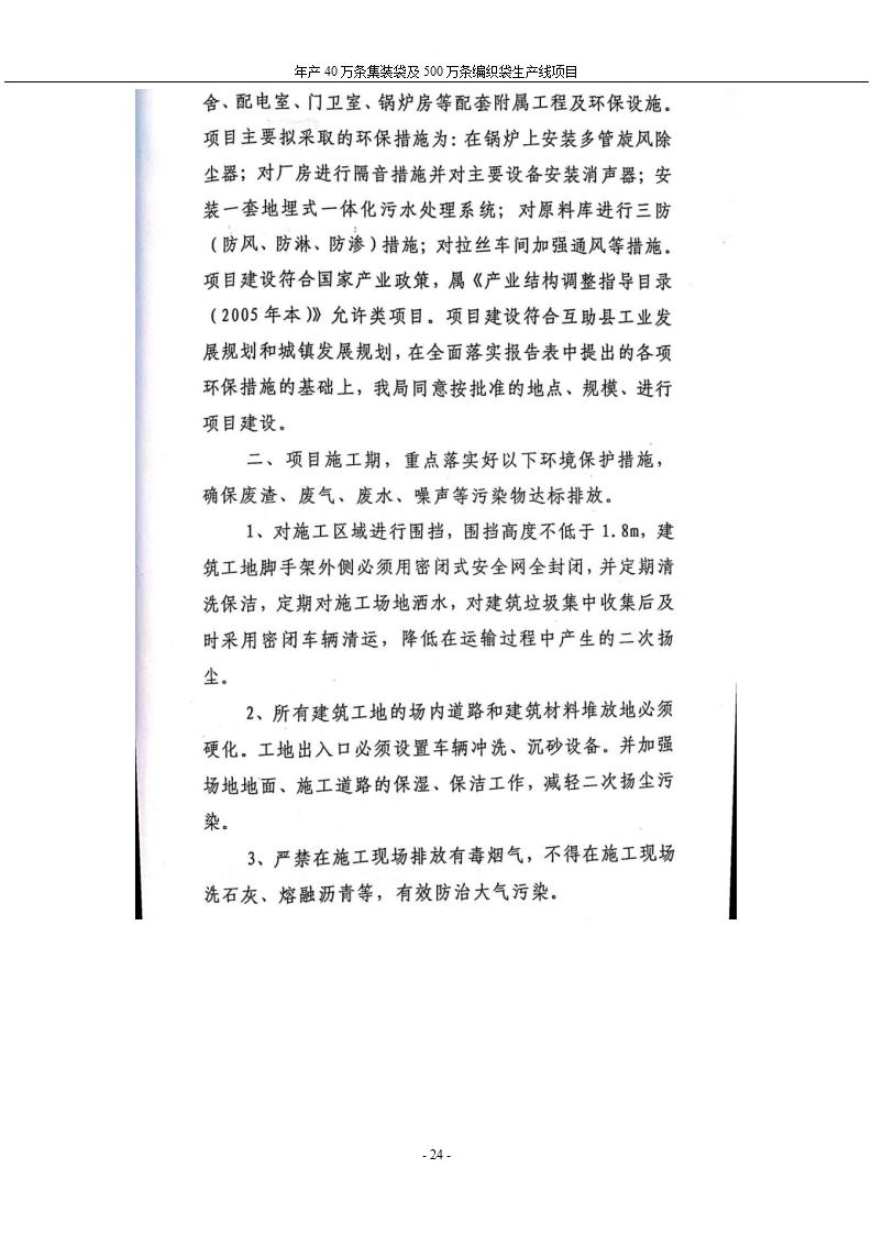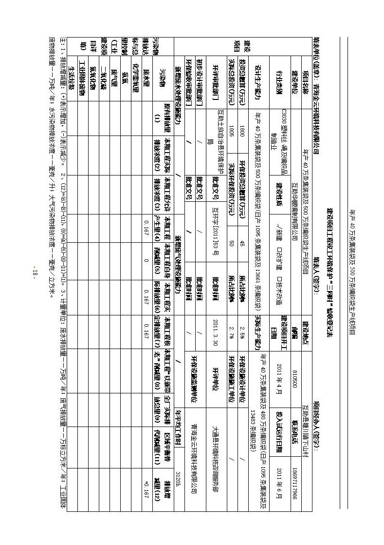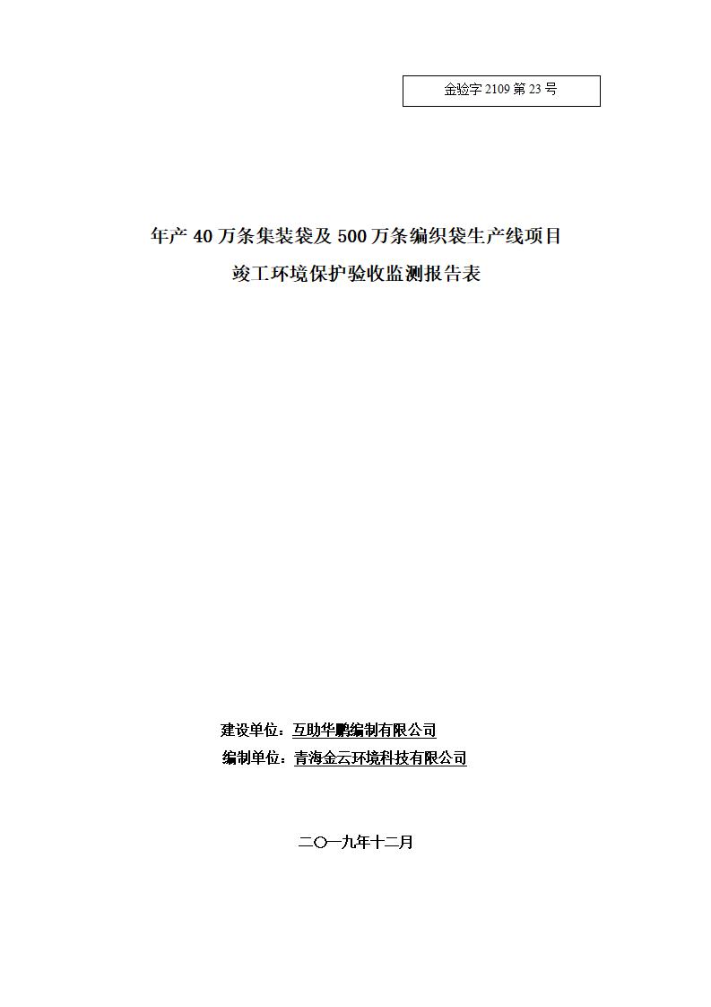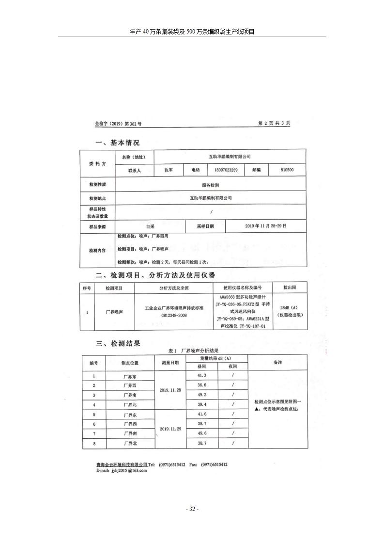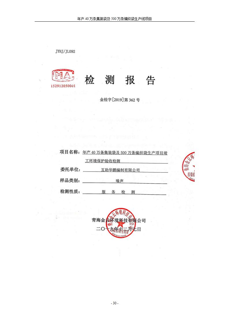 根據(jù)中華人民共和國(guó)國(guó)務(wù)院令第682號(hào)《國(guó)務(wù)院關(guān)于修改〈建設(shè)項(xiàng)目環(huán)境保護(hù)管理?xiàng)l例〉的決定》和《建設(shè)項(xiàng)目竣工環(huán)境保護(hù)驗(yàn)收暫行辦法》(國(guó)務(wù)院令682號(hào)),年產(chǎn)40萬條集裝袋及500萬條編織袋生產(chǎn)線項(xiàng)目(包括竣工環(huán)境保護(hù)驗(yàn)收調(diào)查表和驗(yàn)收意見)公示如下。 一、項(xiàng)目名稱: 年產(chǎn)40萬條集裝袋及500萬條編織袋生產(chǎn)線項(xiàng)目 二、地點(diǎn):互助縣塘川鎮(zhèn)下山城村 五、聯(lián)系人:張工 六、聯(lián)系電話:0971-6515411 七、公示時(shí)間:二〇二〇年一月十三日至二〇二〇年二月十二日 公示期間,對(duì)上述公示內(nèi)容如有異議,請(qǐng)以書面形式反饋,個(gè)人須署真實(shí)姓名,單位須加蓋公章。