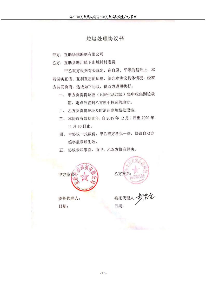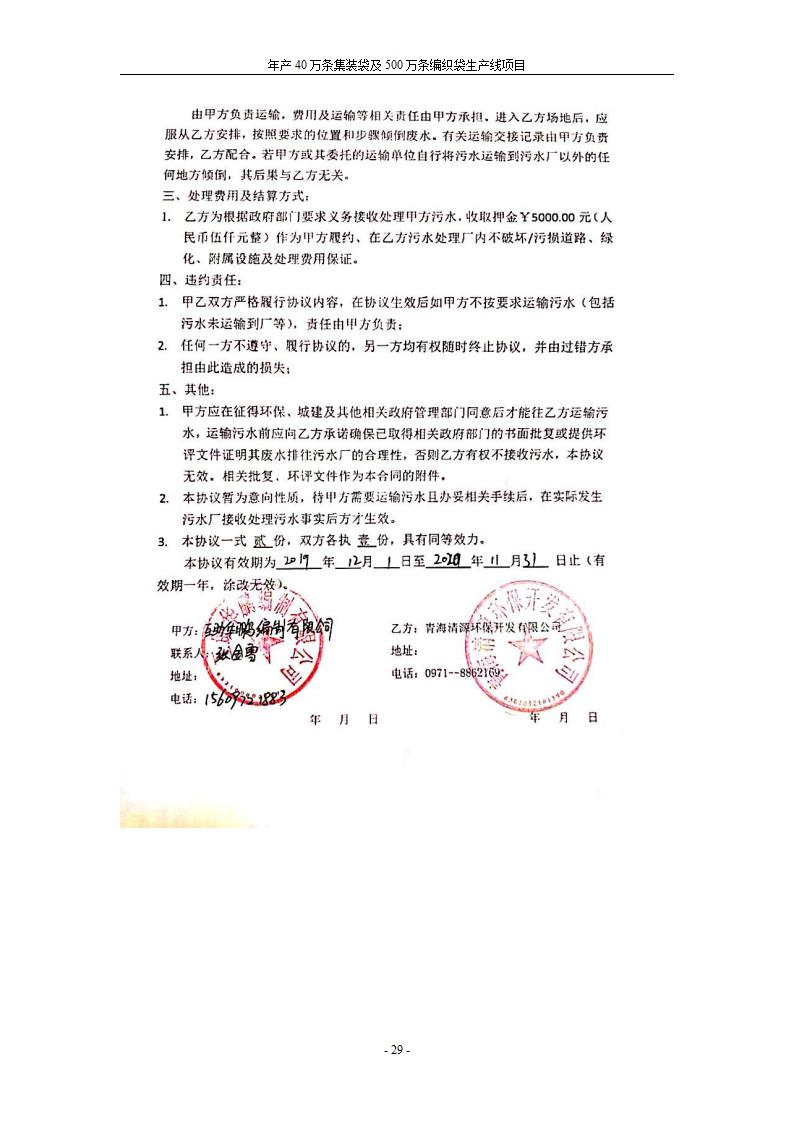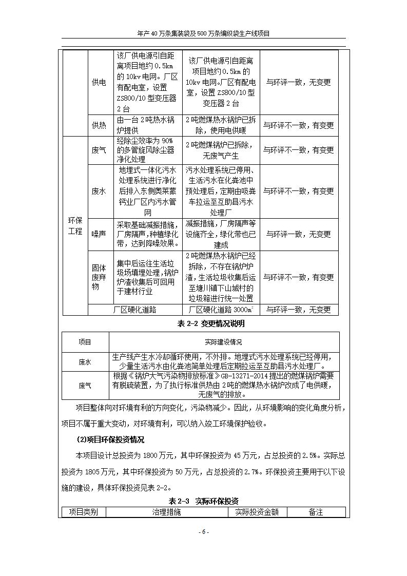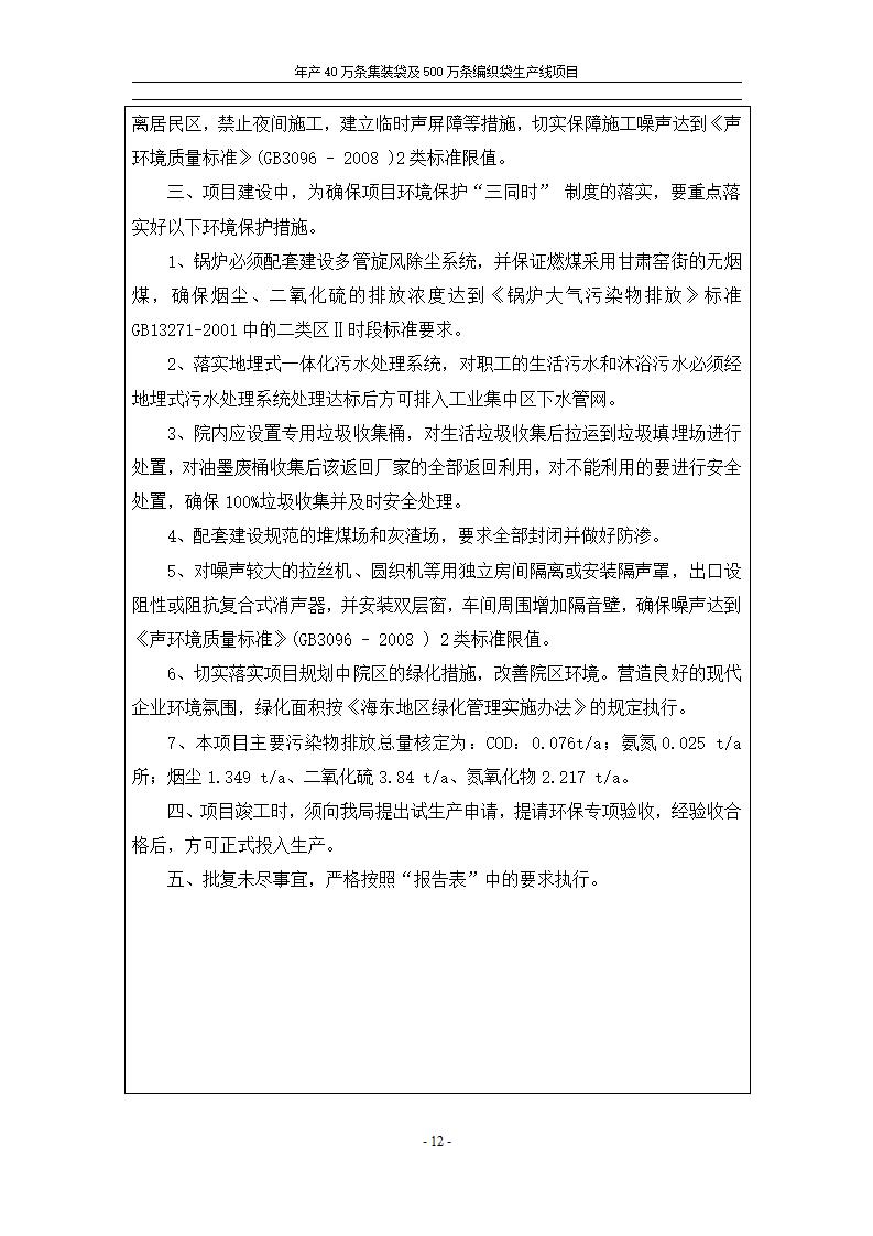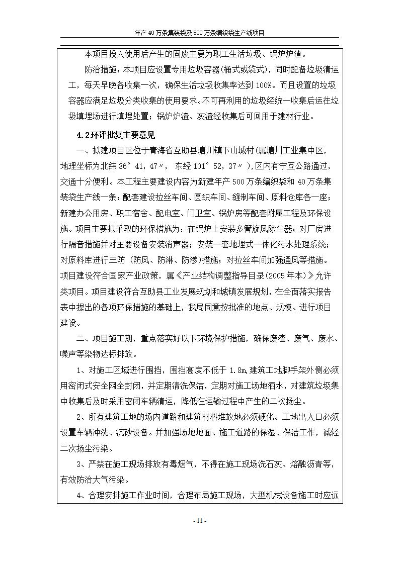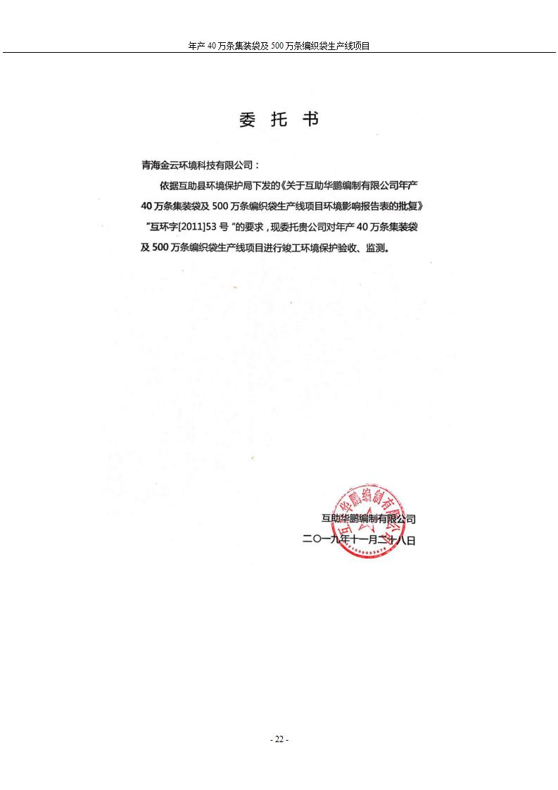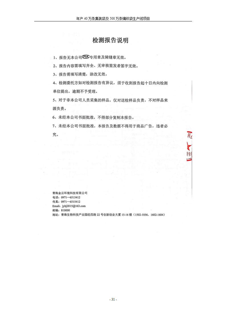根據(jù)中華人民共和國(guó)國(guó)務(wù)院令第682號(hào)《國(guó)務(wù)院關(guān)于修改〈建設(shè)項(xiàng)目環(huán)境保護(hù)管理?xiàng)l例〉的決定》和《建設(shè)項(xiàng)目竣工環(huán)境保護(hù)驗(yàn)收暫行辦法》(國(guó)務(wù)院令682號(hào)),年產(chǎn)40萬條集裝袋及500萬條編織袋生產(chǎn)線項(xiàng)目(包括竣工環(huán)境保護(hù)驗(yàn)收調(diào)查表和驗(yàn)收意見)公示如下。 一、項(xiàng)目名稱: 年產(chǎn)40萬條集裝袋及500萬條編織袋生產(chǎn)線項(xiàng)目 二、地點(diǎn):互助縣塘川鎮(zhèn)下山城村 五、聯(lián)系人:張工 六、聯(lián)系電話:0971-6515411 七、公示時(shí)間:二〇二〇年一月十三日至二〇二〇年二月十二日 公示期間,對(duì)上述公示內(nèi)容如有異議,請(qǐng)以書面形式反饋,個(gè)人須署真實(shí)姓名,單位須加蓋公章。
