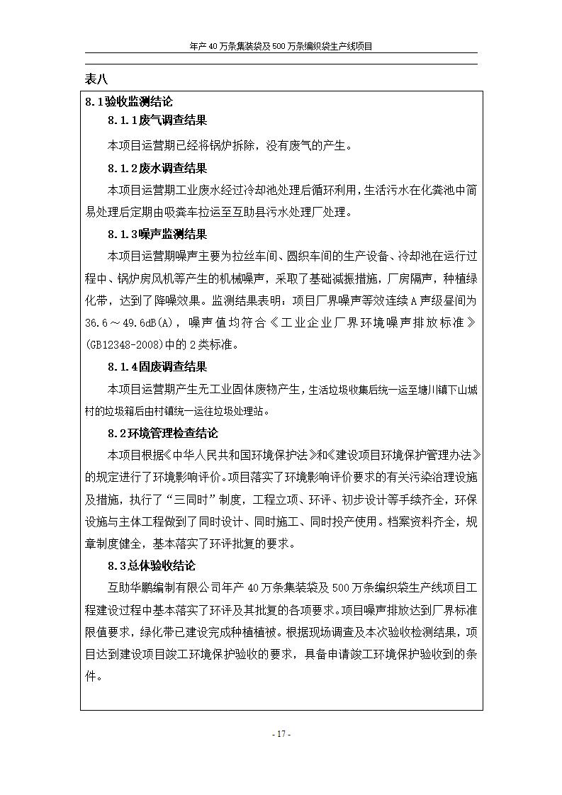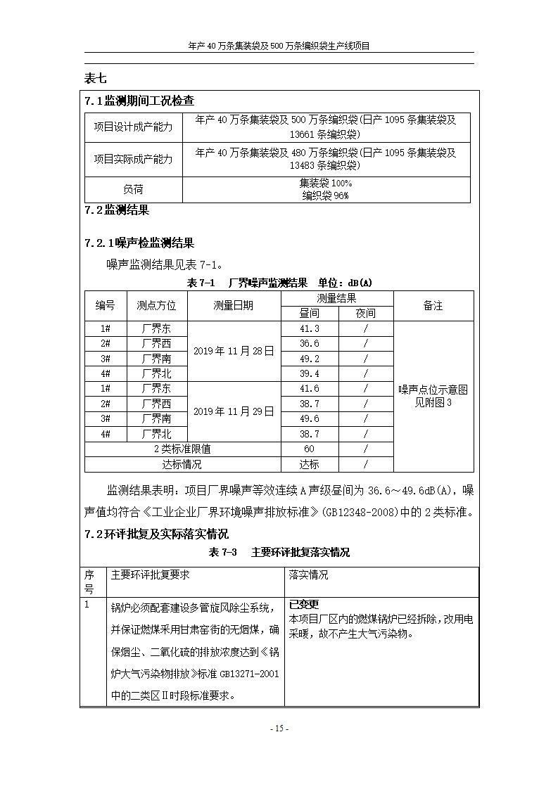 年產(chǎn)40萬條集裝袋及500萬條編織袋生產(chǎn)線項(xiàng)目竣工環(huán)境保護(hù)驗(yàn)收監(jiān)測(cè)報(bào)告表公示發(fā)布日期:(2020-1-13) 點(diǎn)擊次數(shù):2370 |
