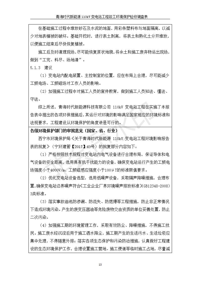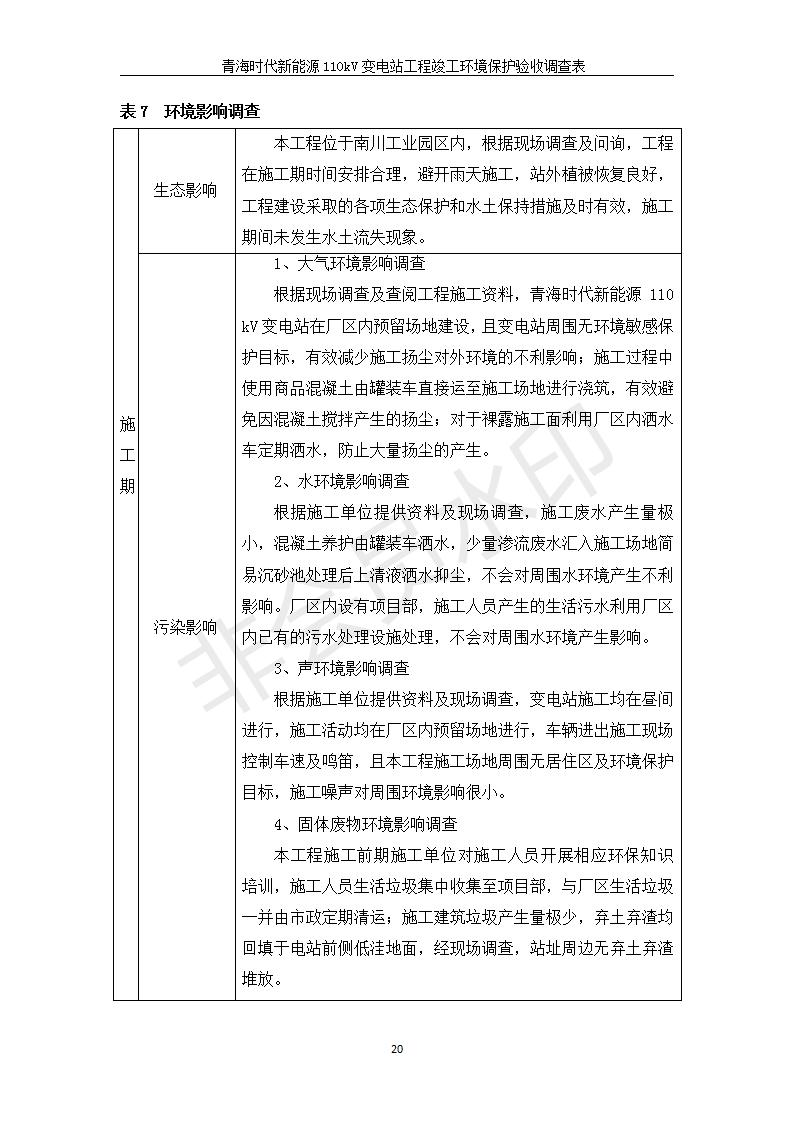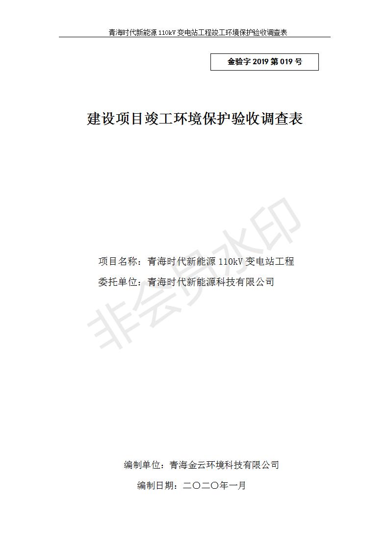 青海時代新能源110kV變電站工程竣工環(huán)境保護驗收調(diào)查表公示發(fā)布日期:(2020-1-14) 點擊次數(shù):2649 |