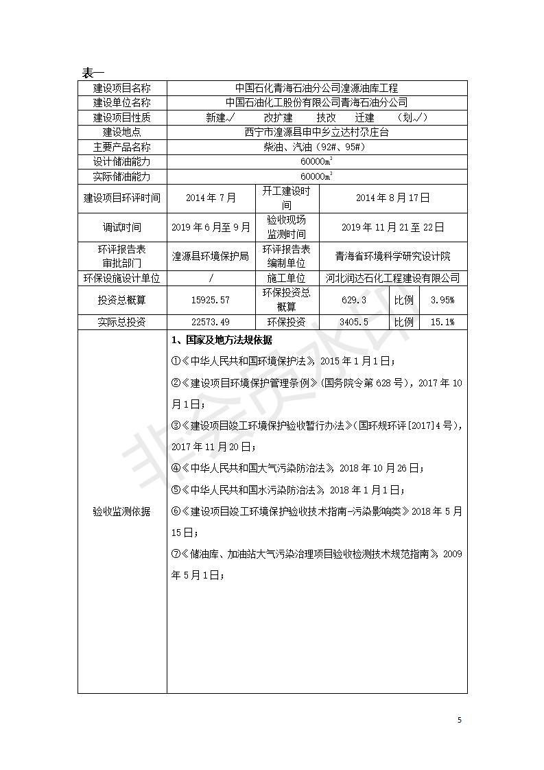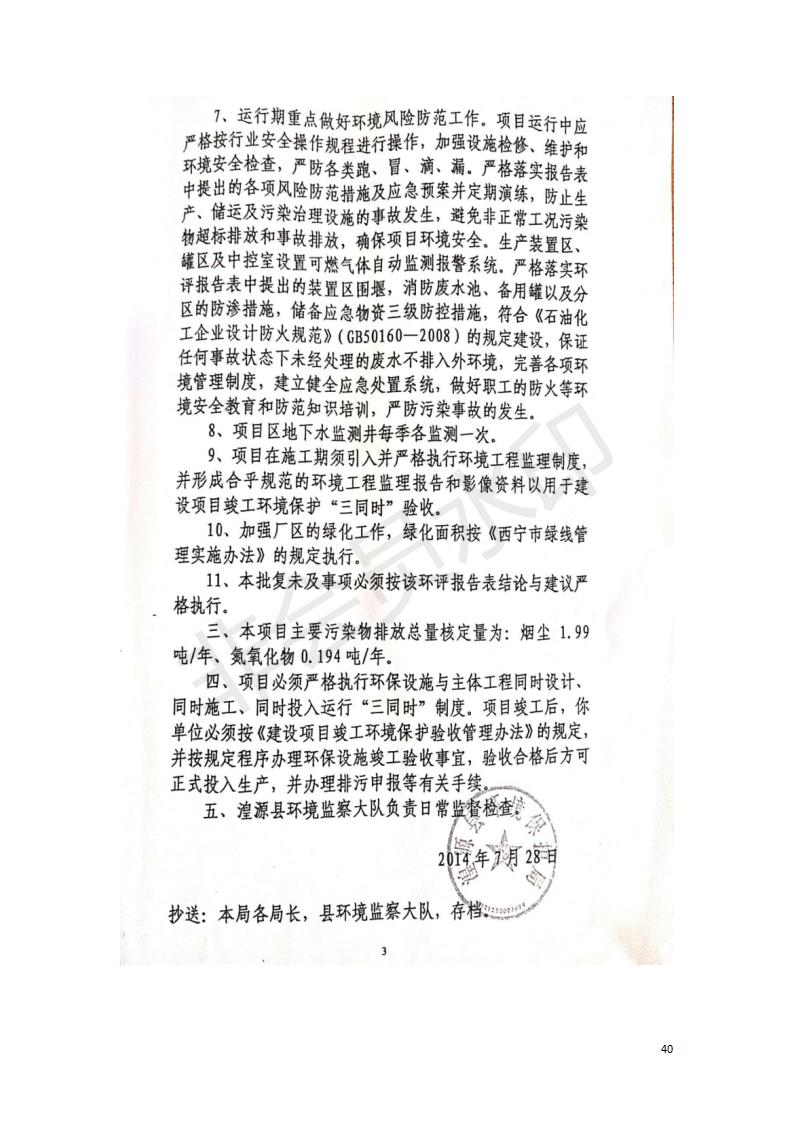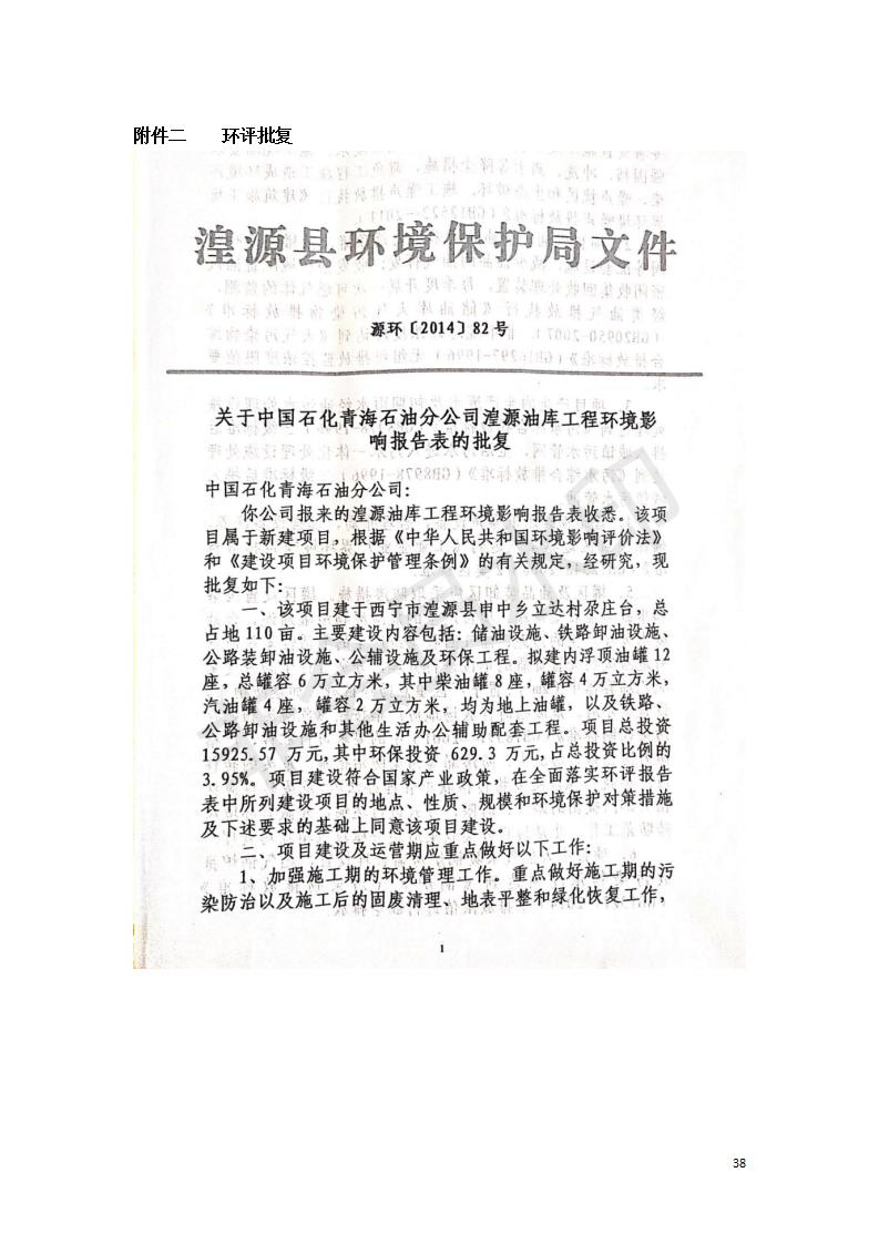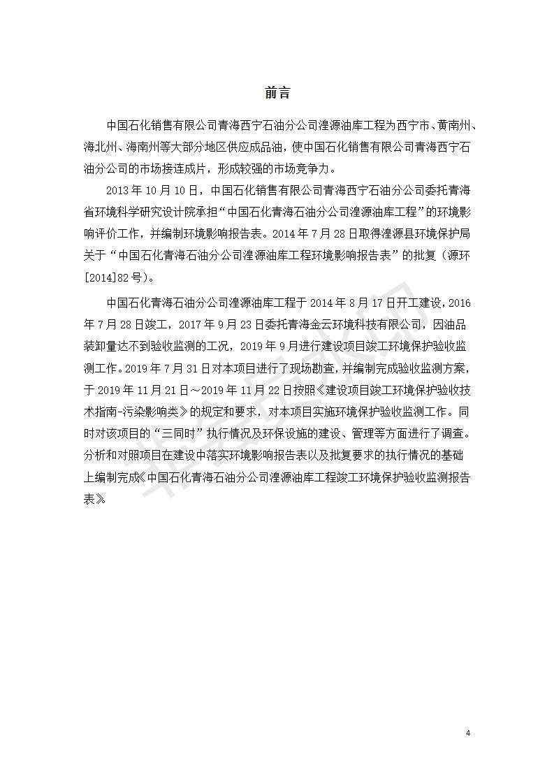據(jù)中華人民共和國國務院令第682號《國務院關于修改〈建設項目環(huán)境保護管理條例〉的決定》和《建設項目竣工環(huán)境保護驗收暫行辦法》(國務院令682號),中國石化青海石油分公司湟源油庫工程建設項目(包括竣工環(huán)境保護驗收監(jiān)測報告表和驗收意見)公示如下。 一、項目名稱:中國石化青海石油分公司湟源油庫工程建設項目 二、地點:西寧市湟源縣申中鄉(xiāng)立達村尕莊臺 三、建設單位:中國石化銷售股份有限公司青海石油分公司 四、建設內(nèi)容:油品儲量6萬m3、其他配套設施。五、聯(lián)系人:董恒棟 六、聯(lián)系電話:18697130811 七、公示時間:二〇二〇年三月十三日至二〇二〇年四月十日 公示期間,對上述公示內(nèi)容如有異議,請以書面形式反饋,個人須署真實姓名,單位須加蓋公章。