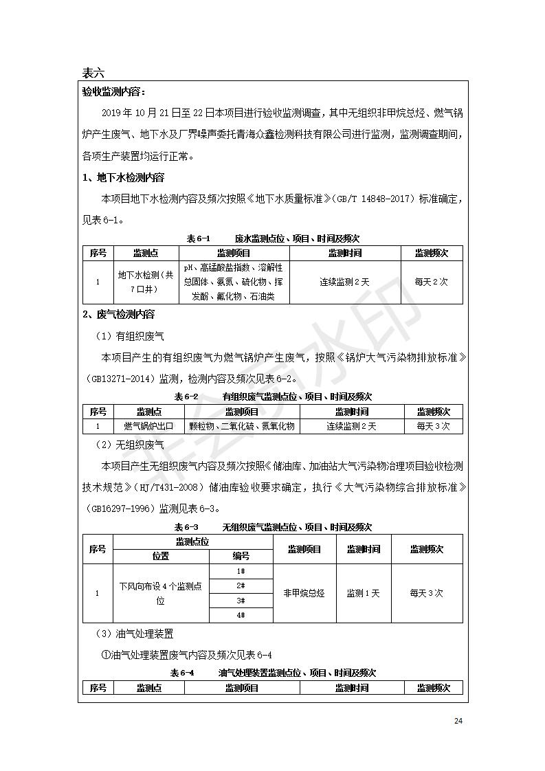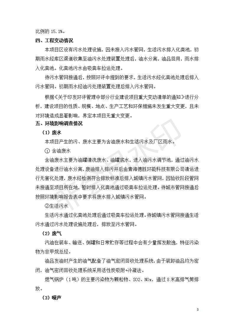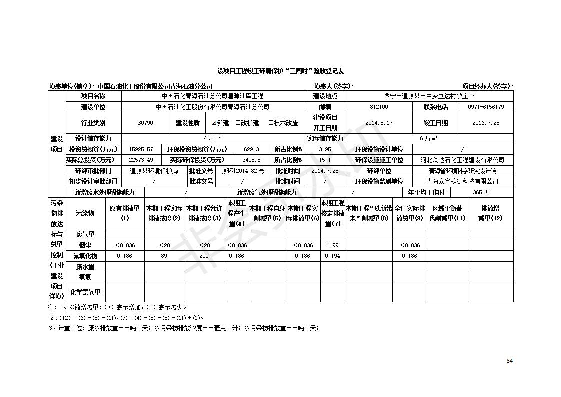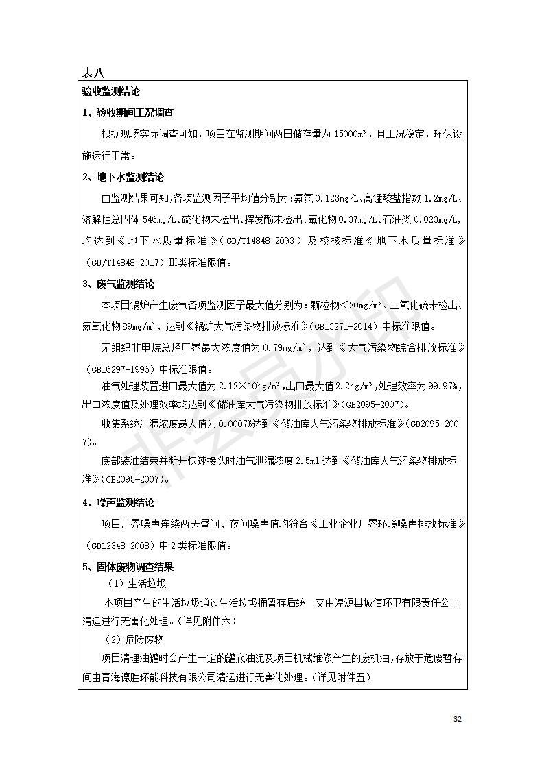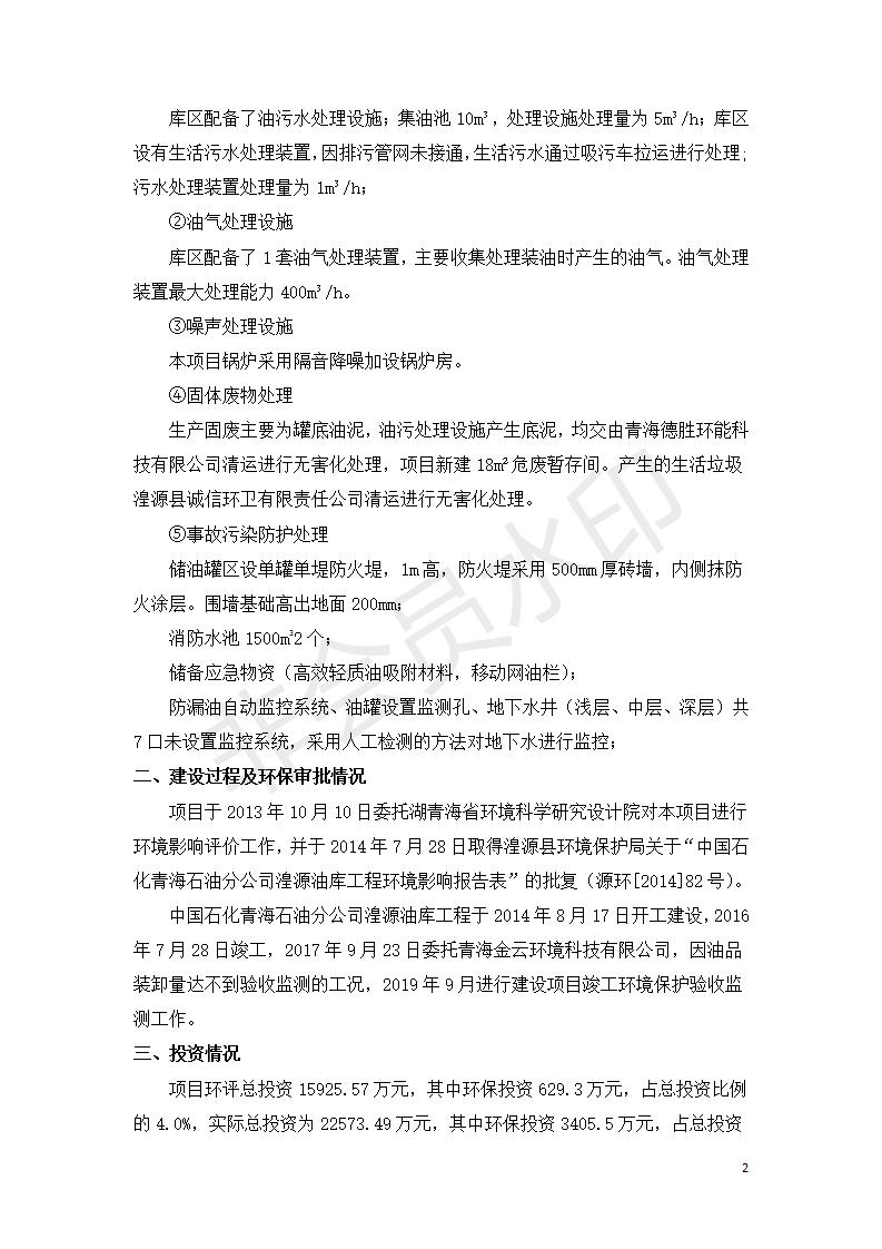 據(jù)中華人民共和國國務院令第682號《國務院關于修改〈建設項目環(huán)境保護管理條例〉的決定》和《建設項目竣工環(huán)境保護驗收暫行辦法》(國務院令682號),中國石化青海石油分公司湟源油庫工程建設項目(包括竣工環(huán)境保護驗收監(jiān)測報告表和驗收意見)公示如下。 一、項目名稱:中國石化青海石油分公司湟源油庫工程建設項目 二、地點:西寧市湟源縣申中鄉(xiāng)立達村尕莊臺 三、建設單位:中國石化銷售股份有限公司青海石油分公司 四、建設內(nèi)容:油品儲量6萬m3、其他配套設施。五、聯(lián)系人:董恒棟 六、聯(lián)系電話:18697130811 七、公示時間:二〇二〇年三月十三日至二〇二〇年四月十日 公示期間,對上述公示內(nèi)容如有異議,請以書面形式反饋,個人須署真實姓名,單位須加蓋公章。