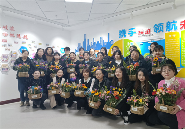 接下來,我們的女職工一起完成了一件特別有意義的活動。插花是一門具有濃郁生活氣息的高雅藝術活動,不僅能豐富我們的日常生活,美化環(huán)境,而且還能提高個人的藝術修養(yǎng),愿精美的藝術創(chuàng)作讓您在百花盛開的美景中清新恰然,陶醉其中,給您的生活添姿加彩,蘇聯(lián)教育家莫博林斯基說:人們的智慧在手指尖上,插花藝術既讓大家在動手的造型中充分開啟智慧,又能在與花為伴中感受大自然的美,這種人與自然融合的美譽,帶給大家的將是凈化心靈,陶治情操,將是喜悅的歡樂,將會使大家更加熱愛生活。